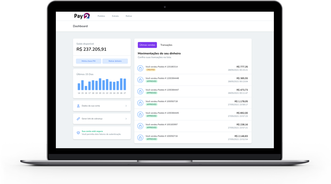 Com nosso sistema de recebimento de pagamentos oferecemos às plataformas de e-commerce e lojas físicas uma forma prática, segura e rápida de processar transações oferecendo assim, a melhor experiência para empresa e consumidor.